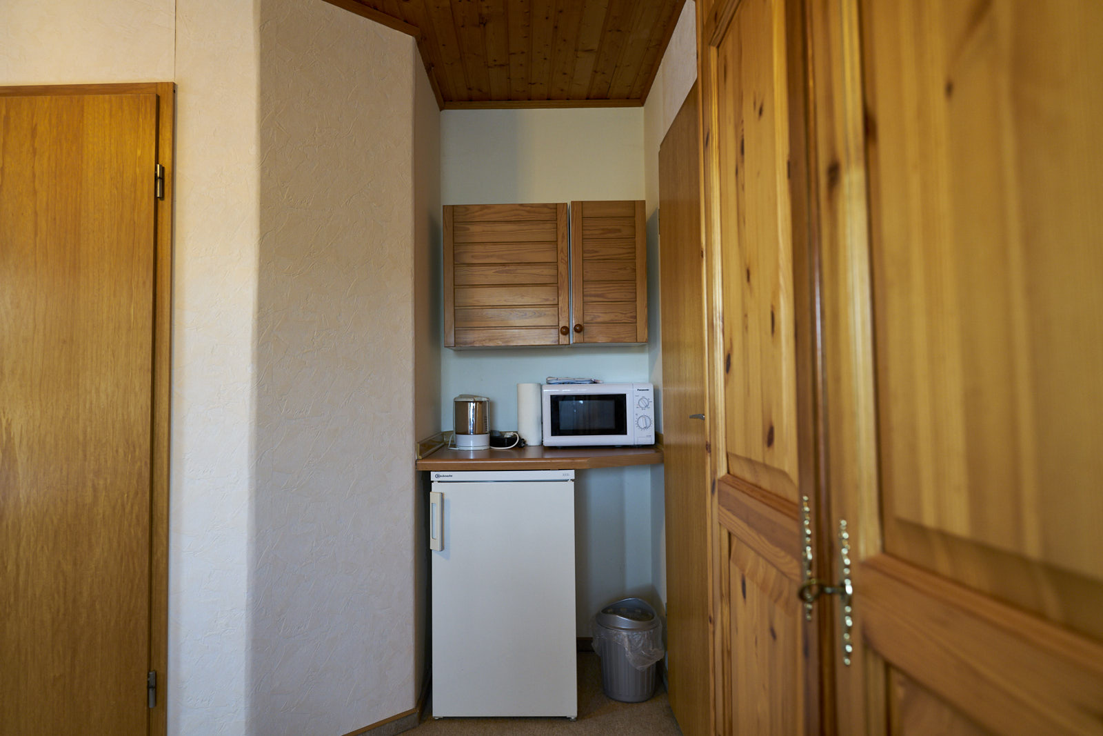 Jedes Zimmer ist mit Dusche, WC, Sat TV, Kühlschrank und Internetzugang ausgestattet.